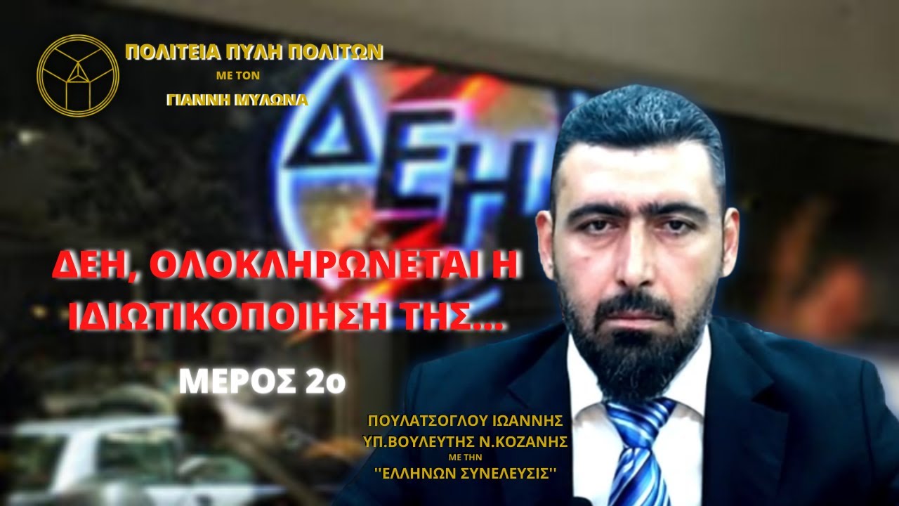 ΓΙΑ ΤΙΣ ΕΠΙΠΤΩΣΕΙΣ ΤΗΣ ΙΔΙΩΤΙΚΟΠΟΙΗΣΗΣ ΤΗΣ ΔΕΗ ΜΙΛΑΕΙ Ο ΚΥΡΙΟΣ ΠΟΥΛΑΤΣΟΓΛΟΥ ΙΩΑΝΝΗΣ,ΥΠΟΨΗΦΙΟΣ ΒΟΥΛΕΥΤΗΣ ΣΤΟ ΝΟΜΟ ΚΟΖΑΝΗΣ ΜΕ ΤΟΝ ΠΟΛΙΤΙΚΟ ΦΟΡΕΑ ‘’ΕΛΛΗΝΩΝ ΣΥΝΕΛΕΥΣΙΣ’’ ΣΤΗΝ ΕΚΠΟΜΠΗ ‘’ΠΟΛΙΤΕΙΑ ΠΥΛΗ ΠΟΛΙΤΩΝ’’ ΜΕ ΤΟΝ ΓΙΑΝΝΗ ΜΥΛΩΝΑ.