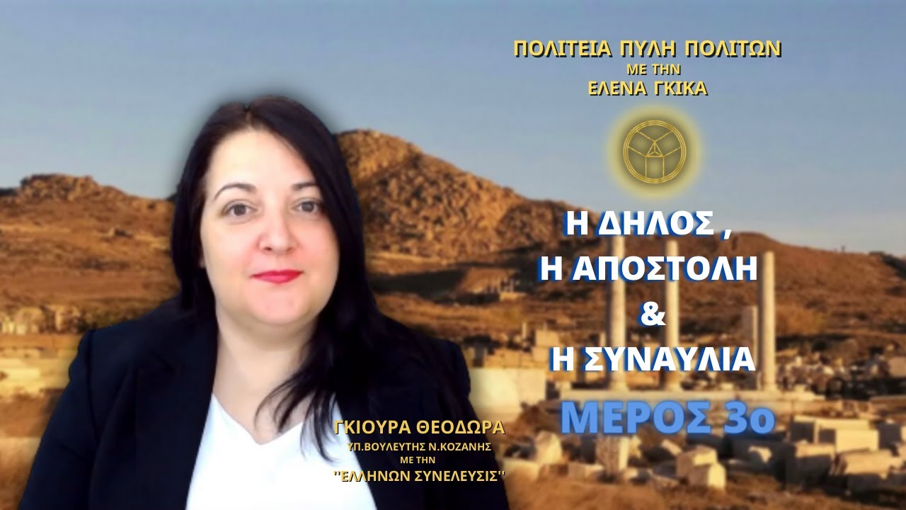 Σε όλα τα παραπάνω απαντάει η κυρία ΓΚΙΟΥΡΑ ΘΕΟΔΩΡΑ, Υποψήφια Βουλευτής στο Νομό Κοζάνης με τον Πολιτικό Φορέα «ΕΛΛΗΝΩΝ ΣΥΝΕΛΕΥΣΙΣ», στην εκπομπή «ΠΟΛΙΤΕΙΑ ΠΥΛΗ ΠΟΛΙΤΩΝ» με την ΕΛΕΝΑ ΓΚΙΚΑ.